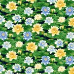 Brilliant blue winged dragon flies yellow bodies landing on green lily pad.