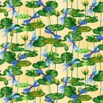 Yellow and blue water lilies green leaves with a touch of yellow on a dark blue background